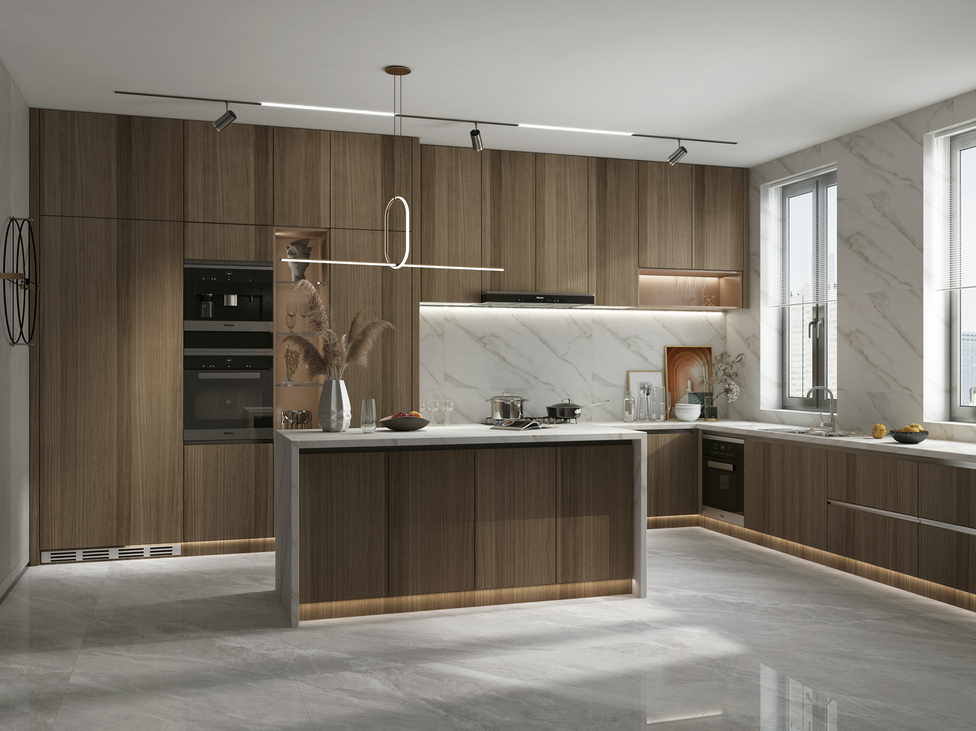 隨性的灰色脈絡被糅合進白色的世界,向遠處延伸,似天山暮雪,含蓄溫婉、飄逸靈動,深淺不一,營造出綿延雪山無限延伸的美感,勾勒出別具格調的流行風尚。