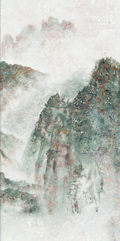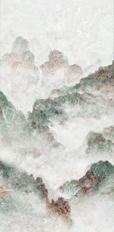 設計源于藝術感十足的山水石材,山水畫紋理交融在一起,猶如暮靄中的遠山,給人一種不是真山真水,卻恰是山水的心境,正如“妙在似與不似之間”。